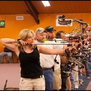 So, I am 100% a city-gal, but I loved archery in school and summer camp. Soooo, I was excited to visit Cinnamon Creek Ranch after a friend mentioned the indoor archery WITH equipment rentals. Was a fairly quick drive via I-35, & my map app took me to the correct location. Staff is so friendly AND teach classes, or, like for me, they will give you a 2-3 minute refresher before you start. You rent a target at the range ($15 in March 2024), & you can rent a compound bow and arrows ($20 each in March 2024) that are honestly in really good shape. The range's targets are well spaced. They even have axe throwing in another area, if you're into that. They also have high-top tables and chairs for friends/family to sit and 4 big tvs on the wall for those not shooting. TIP: When you arrive for archery, go to the building on your left when you park (marked "Event Center" and "A") bc the building on the right is for game processing. I definitely will return!
