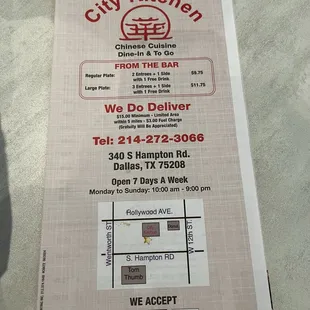 EXPERIENCE:I dropped by on a Saturday around 11:30am. Not busy just us and someone else with their child.The person was on FaceTime having a whole conversation the entire time we sat there to eat our lunch. They were very loud and so was the person they were talking to. Then someone from the kitchen sat with them to eat so it had to be someone close to the staff. Extremely rude to have a loud conversation while your customers are trying to enjoy their food.The dining room is spacious and nice but they bring your meal out in take out containers. They also give you plastic utensils. I wouldn't mind this so much if the broccoli/veggies were cooked longer. The broccoli was so hard my mom couldn't pick up the broccoli with the spork provided. Not only were they hard but they weren't cut so we couldn't scoop them up either because they were so big. You're better off getting your food to go and eating at home with your own utensils. FOOD:The portion sizes are great. I ordered from the all day combo special and it was enough for two. Drinks are canned/bottled and water is available too. No zero sugar soda available which was a bummer but at least they have water. I had the Hunan chicken. The flavor of the food was fantastic but the broccoli and bell pepper needed to be cooked more. And I usually like my broccoli to have crunch but they were barely steamed lolChicken broccoli had great flavor too. They do have a buffet option during the week but again you pick a container size and that's how you choose how much food you get. I think that may be the "From the bar" on the front of their menu. I will order again for take out/delivery but ask for my veggies to be cooked longer. I asked the cashier if they could do that and she said yes. I wouldn't dine in unless they have better utensils and plateware.