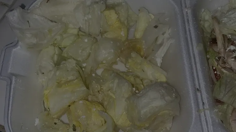 And this is what was left after I removed the hard white/brown chunks of "iceberg" lettuce from my Side Mediterranean Salad