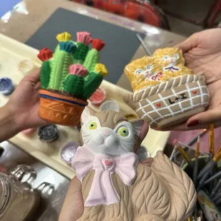 We had so much fun painting here! I had been to a similar place and decided to give this place a shot, since I knew how much fun it was. The owner was very friendly and helpful. The studio is so colorful and creatively decorated! This place is great for kids and adults of all ages. They offer two styles of ceramics. One type is a fired ceramic that you can eat/drink from it. You will have to come back in about a week to pick it up. The other style is plaster that you paint and glaze and take home that day). First pick your piece of ceramic. Each piece is priced differently depending on size and style. They have so many to choose from. Magnets, ornaments, pots, mugs, vases, animals, etc. I really wished they had more cute pots to choose from. I love painting pots that I can use for plants. One cool thing is, if you pick a pot the owner can put a hole in the bottom for drainage! Next you paint! Pick your colors and brushes and get to work! Take all the time you need! They give you shirts to wear so you don't make a mess on your clothes! I'm excited to go pick up my piece of art. Hopefully, it turned out good! I would imagine we will come back to this place for more painting in the future!