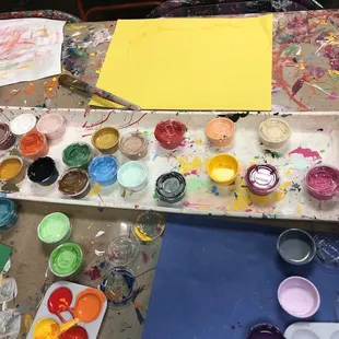 I come here now and then to relax and paint. Sometimes there would be birthday parties going on and kids running around (but that's okay since i love kids lol). They have items to pain for every age. Some of the larger items are more pricier, while the smaller items are less expensive. The staff is friendly and are always available to help. There's a variety of color paints that they let you use. Sometimes the brushes are old and aren't that great, so you'll just have to improvise and try to use the color construction paper to make fine-point brushes. This place is kid/family-friendly. They play Disney songs and have a "under the sea" wall-themed restroom. Love coming here and would recommend it for those who are creative and wanna have fun painting :)