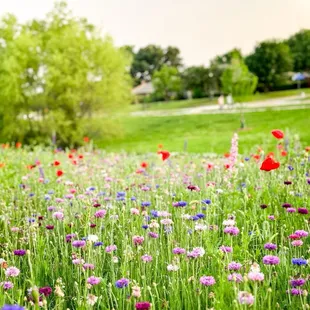 This is a beautiful park with a nice walking path, a clean playground, a picnic deck on top of a small pond, and wildflowers! We stopped by the park after dinner but discovered the giant field of wildflowers in the back, which made the visit a lot more memorable. The flowers are gorgeous and there are so many spots for photo opportunities. I saw 7 groups of people taking photos and they were pretty spaced out. There are paths you can walk between the flowers so you don't step on them if you want to walk in. I'm not sure how long the flowers are blooming but definitely check out soon!