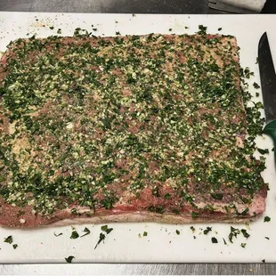 a piece of beef on a cutting board