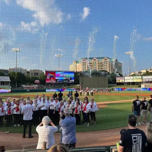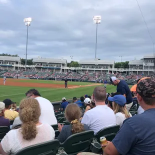 This place is great! Last minute idea and it turned out to be so much fun. Beautiful facility, great food and the fireworks at the end were just as good as any 4th of July show I've ever seen. We sat right above first base, three rows in from the field for about $20 each. Of course we had a DR.Pepper, you have to have a DP when your here. 100% recommended, FIVE STARS all the way!!