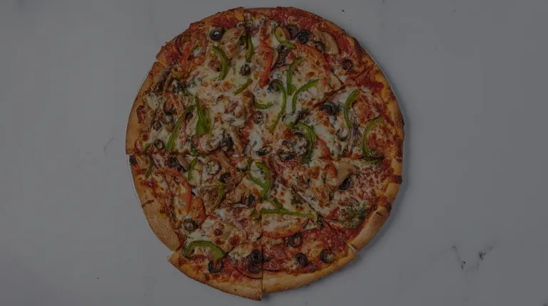 Zabiha halal delight with our savory pizza topped with Halal Canadian bacon, halal pepperoni, Halal Italian sausage, onions, mushrooms.