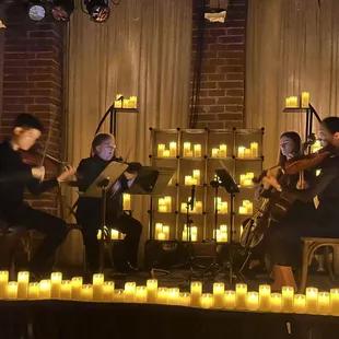 Everyone should give this a try and Edison's is a perfect venue for the event. Concert by Candlelight with a four string quartet. Our evening was 80s songs and we enjoyed it with a glass of red wine. The photos & trimmed to fit Yelp videos don't do it justice.