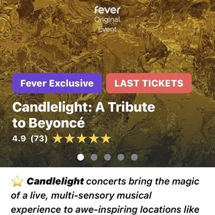 This is a great theater option! We came here the other day for an event through Fever. Staff was absolutely wonderful and parking was a breeze!They do have some of their Candle Light concerts here as well. However, I came for the Fever Flamenco Show. While the performance was absolutely fantastic, I had to take off a star for their seating arrangement. I wish they had slightly created a more open stage. It was very difficult to get a good view from certain angles before they had their sound system block the view from the outer angles.
