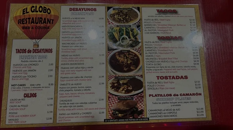 El Globo is a must if you're searching for great Soups! Their Menudo is something special and their Pozole and Caldo de Pollo o Res is superb! They also specialize in Tortas and tacos. And Mexican enchiladas!!!