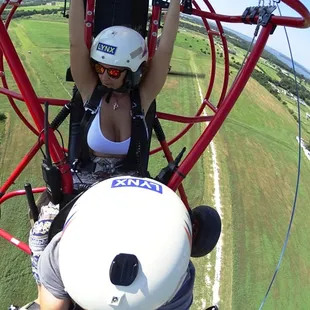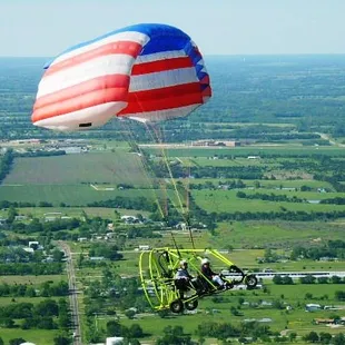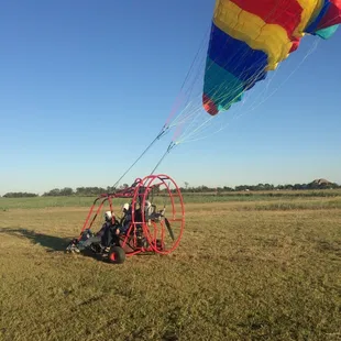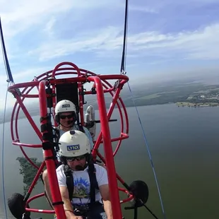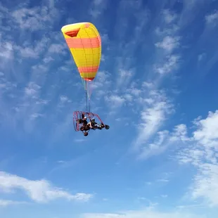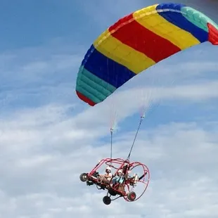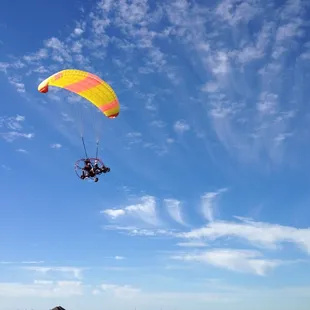 Dave, a pilot of over 30 years, took me up in his powered parachute on my birthday. I was looking for parasailing and this was the closest thing I could find...I think it was even better. Super fun! Dave gives you a few minutes to steer the parachute. You feel very safe. My only regret...wish it had lasted longer and that I had bought the video. :)