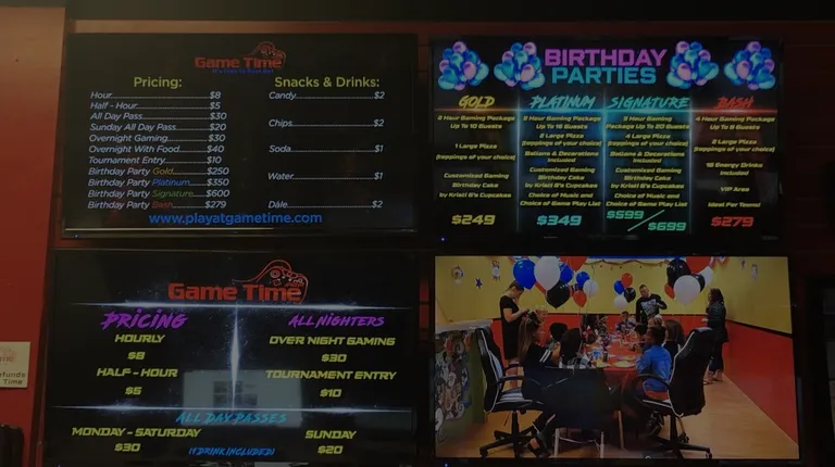 Great place to bring the kids and get them into an open environment to game... the staff is very friendly and goes out of their way to help kids. You can buy snacks and drinks and play to your hearts content... they have switches setup on big projectors- with all the main Mario games, really fun to play with a friend- this is my sons favorite place to go. Its located on the inside of golden triangle mall-- which is straight of the 80s, but this placeIs a nice hidden gem inside.
