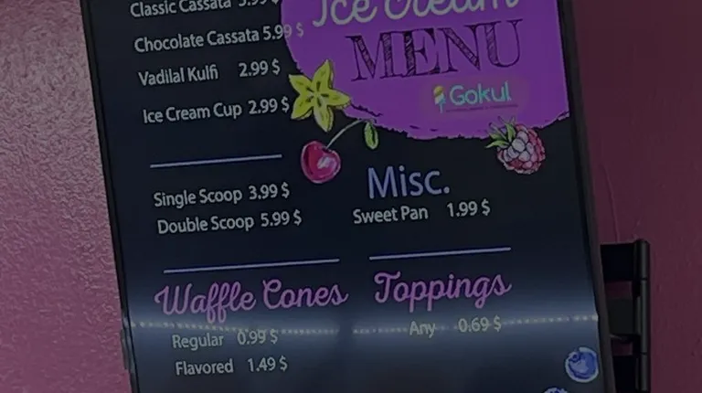 Gokul Ice Cream is a great ice cream and snack shop! Perfect place to get some very unique Indian flavors as well as the classics. Service was great and the shop also makes fresh pan on the spot! Plenty of desi snacks available as well. Definitely would recommend stopping by here!