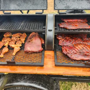 the meat being cooked on the grill
