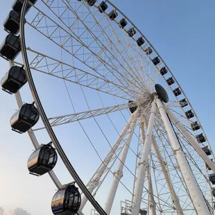 I took one of my favorite kiddos who loves Ferris Wheels for a ride on a Saturday. There wasn't a line and we were able to just walk up. Although there wasn't a line, and it appeared to only be 3 pods in use, we still had to wait for that trip to end prior to being allowed on. The pods can hold 6 people and are air conditioned. During the first rotation, once we were at the top, the Ferris Wheel stopped for about a minute to take pictures. I'll be honest, there really isn't much scenery to take pictures of - the tops of businesses, parking lots, and traffic on the highway. At times, views from the pod are obstructed by the wheel its self. It's a novel idea if you're looking for something to do. Cost: $45 for two adults and a child for a 13 minute ride. You can probably find something more interesting to do for that price.