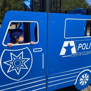 View into the "police car" on the smaller playground (police station theme)