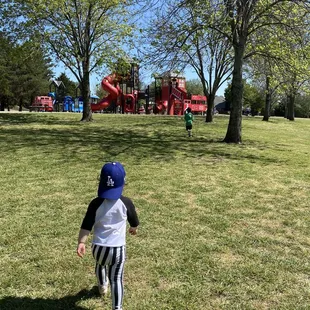 Im surprised no one reviewed this park yet! During summer I have been on the lookout for parks as keeping three boys entertained during summer break isn't always easy during this time. I was able to google some places and I have to say that this one is actually perfect for younger children (2-8). The theme of the park is the forestation (as it is also located right next to the fire station. There have two climbing structures, swings and many seating areas for parents. Also close by there is a patio with picnic tables for hot summer days which provides plenty of shade. It's a small park so you can easily watch your children without having to chase after them. As this playground is catered for more younger children you could bring some balls (soccer, football) for older kids to play as there is also a big green field (plenty of space) to run around. Parking is street parking! Definitely fun and cute little park!