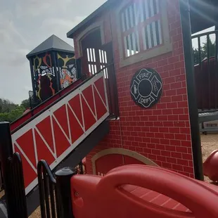 Green Park -- view of the larger of the playground structures (fire truck theme)