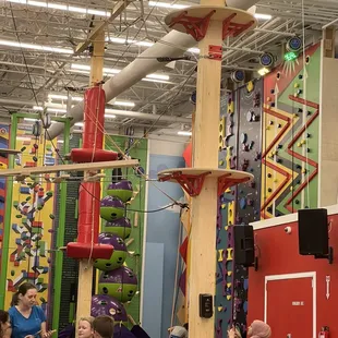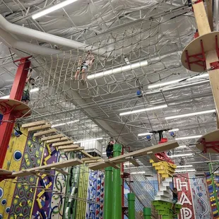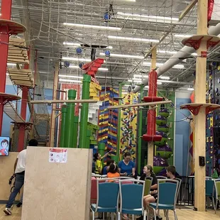 Such a cool fun climbing experience for kidsTook my 5 year old son here. The place is filled with so many different climbing walls and structures. There were tables for birthday parties, events, etc. 5 years and under was $12.99 for 2 hours of climbing. Free if you're not climbing. You are fitted with a harness. Lots of young kids were able to independently go up and down by theirselves with a few staff members scattered throughout. Parents are allowed inside. This was my son's first time going to anything like this. At first my son was very scared but he slowly built up his confidence and then excited to try out the climbing walls. There was an obstacle course and zip lining for kids that is 4ft and above. My son had so much fun. Will come back!