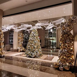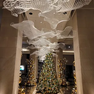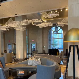 Beautiful hotel. During the holidays, they decorate the common areas so nicely. The entrance is very elegant. The chandeliers are wonderful and very unique. There's a bar on the right side, along with the entrance to Nobu the sushi restaurant. Lots of seating in the bar area with comfy couches, chairs, stools, and tables! The pillows make the seating extra comfortable. Valet parking in the front is fast and efficient.