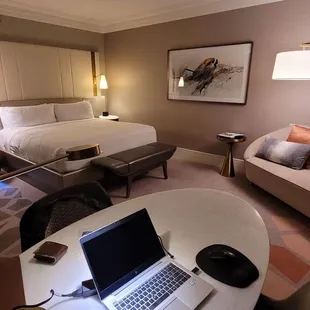 Fantastic hotel in downtown area close to major corporate offices. The lobby is gorgeous. The rooms are spacious and clean. The bed was very comfortable. We did eat in the lobby bar and restaurant and the food and beverages were of the highest quality. Plenty of variety and not the normal bar food. The best part was the friendly staff who went the extra mile to make you feel comfortable