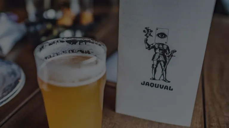 We were down the street at a pop-up taco shop when the owner recommended we swing by Jaquval for a drink.The dark pub decor & old-school taps transport to you a new place, and I was glad to see that the 1 TV in the establishment was tuned to the live PL match. There are plenty of wooden tables to sit at--it's a great place to catch up over drinks for an hour or two.I didn't get a chance to try the food, but sampled a handful of beers. They offer a good selection of classic beer styles. The coffee stout was a nice sipper, but I think my favorite of the bunch was the Pilsner.