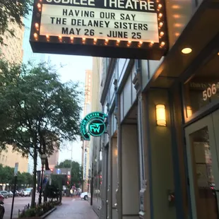 This was my first at the Jubilee and I can not wait to return. It is such an intimate theatre. Every seat in the house is great! The staff is so warm and welcoming. They have a small concession area so you can enjoy wine, beer, soda, water, and snacks while you enjoy the show. Credit cards are accepted. Free valet parking, just be courteous and tip! Currently playing: The Delaney Sisters:Our First 100 years. I highly recommend this show before it leaves the Jubilee!