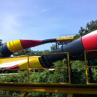 No track? No problem.Gains notoriety for being one of the few remaining 'bobsled' coasters in the USA. For those unfamiliar with the genre, bobsled coasters are essentially free-wheeling trains that navigate a half-pipe "U"-shaped track. Unlike 99% of all other roller coasters that are affixed to the track, bobsled coasters have the ability to move around in slightly different ways depending on the weight distribution within the car. The downside to this is that it results in a much tamer ride since the speed is limited to under 30 or 40mph.There are also 3 block brake sections--an unusual number--to control any variance from car to car and reduce the amount of 'fishtailing' the free-rolling trains experience. The other downside unique to this particular model is that the cars themselves only seat a maximum of 6 people in an in-line arrangement. This results in a very low rider capacity per hour and, as a consequence, long lines. Counter this by making it your first ride of the day.Don't let that 60ft height statistic fool you; when the single train disengages from the lift hill and you come rumbling down the course, you'll be glad there's handlebars nearby! Lots of fun for everyone big and small, and one of the last of its kind anywhere in the world.