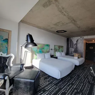 This artsy fartsy hotel used to be a Ramada Inn. It's where Tina Turner stayed when she escaped from Ike Turner (the room she actually stayed in that fateful night had been dubbed the "escape suite.) Our stay was uneventful. Our room was quite spacious. The pool area was nice and our room had a lovely view of the downtown skyline, which is really pretty at night. There was construction going on that left the road closed some days, but it was a minor inconvenience. The only thing I would change is that the parking lot is highly accessible to anyone walking around; I wish it was closed off or at least gated. Overall, it was a nice stay!