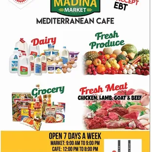 Food is pretty good. More importantly, we did some grocery shopping and they have good products and prices. The meat market personnel were very helpful and we able to accommodate a special request on our part. Many thanks to Madina Market.