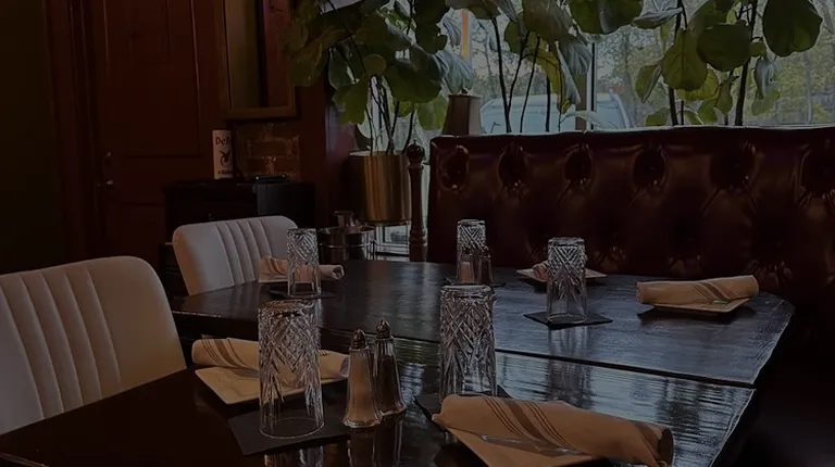 a brick wall and booths