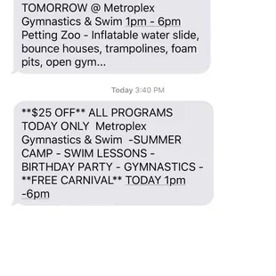 Email from Metroplex Gymnastics