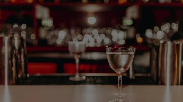 a glass of wine and a drink on a bar counter