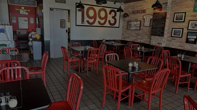 Super clean dining area with a fun Detroit vibe