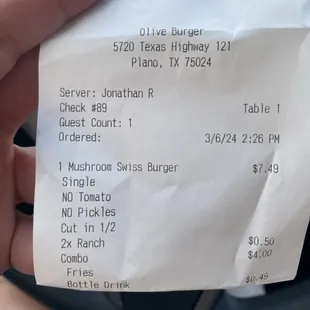 Old School burgers, grilled chicken breast, mediterranean dishes, salads.Menu has big variety of food items, from light & healthy, to comfort food for your belly!Drive-thru, order ahead by phone 972 238 2811, or online oliveburger. comOlive Burger recently opened down in Garland, TX, nice location. One older location on Arapaho west of 75 Central Xpwy. I think the original is on Custer Road north of Parker in Plano. This visit, I am at Far North Plano, along the 121 Frwy frontage road eastbound, or just south of Frisco, TX near Stonebriar Mall. I have eaten at all 4 Olive Burger locations now, like rounding the bases for a homerun in baseball. But that's what I do!