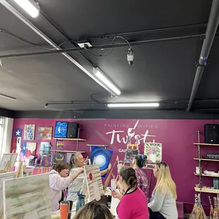 These ladies are simply fabulous. My entire family spent New Year's Eve painting with a bit of wine (adults of course). The kids had a blast in one room while we hung with the adults in the other.I'm no painter but the instructor gave great direction and she was super patient. Picked up a frequent painter card because we will be back for sure.