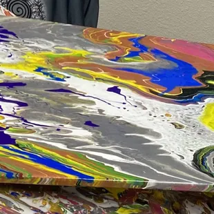 Wow, what fun! My friend and I recently celebrated her birthday here. We had a blast. We loved the paint pour class. We began by choosing a couple of different colors, I chose darker colors :) James, the instructor demonstrated some strategies and then he gave us the space to create our own art. Kudos to James for providing a fun and creative atmosphere. I highly recommend Garland Painting With a Twist.Thank you for the great memories!