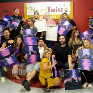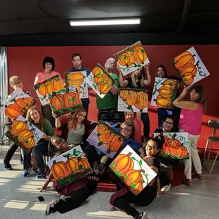 My coworkers and I went to Painting With A Twist for our quarterly Team Building. We had so much fun! We painted a pumpkin scene. The instructors Jennifer and April, were great. Very encouraging and gave clear directions. They played fun music everyone liked and we all left with our paintings. This was a great team experience because we all encouraged each other and laughed like crazy. I hope we do this again!