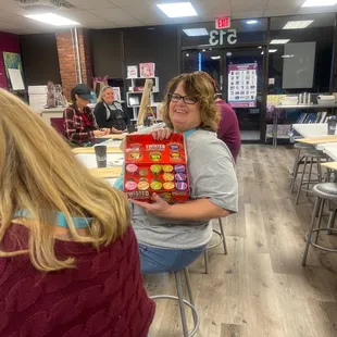 We had an awesome time celebrating our friend's birthday. Our instructor was very knowledgeable and patient. He was also very helpful in making our painting look pretty decent. I highly recommend the Rockwall location! Their staff rocks!! We were able to book a semi private party on a Sunday. We had a group of three join us. By the end of the session, you would have thought that we were all together. We ordered pizza from Mr Getti's next door which was very delicious. This was one party that we won't forget.
