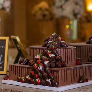 Bottom was strawberries n' cream and the rest was chocolate mousse! Our guests raved about it and there was not a single piece leftover!!