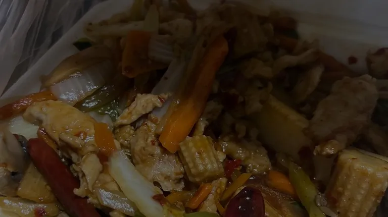 Hunan chicken was not as good as when I have ordered it at other places. Slivers of chicken. Not sautéed well. I don't think I have had it with mushrooms before. Not really spicy. Just looks like they threw a lot of stuff in the styrofoam container and tossed some peppers in as an afterthought
