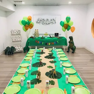 We hosted a birthday party for our 3-year-old and 5-year-old boys. They did an awesome job setting it up with the dinosaur theme that we selected. The kids had a blast! It's the perfect place for a birthday party.