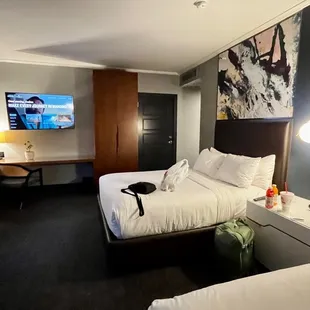 I was in Dallas for my sorority convention (AKA) and I enjoyed my stay here. The decor was super neat with the old school record player and real vinyl records in the room for your enjoyment! The staff was very friendly and acknowledged my reward member status with complimentary room upgrade and other goodies! The room was very nice and the bed so comfortable, I could've slept for days after a busy convention day. Only wish they had a microwave in the room to heat up leftovers, but overall a great property!
