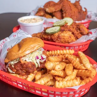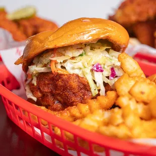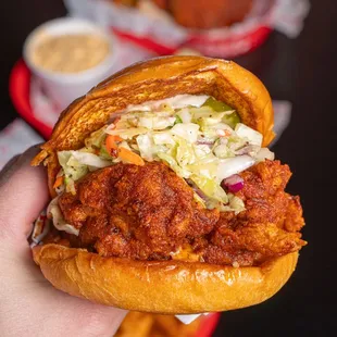 Oh my lord, I'm so happy this location opened up. The Richardson one is always so packed and this place has ample space to eat. The portions are slightly smaller here than Richardson but the taste is still on par. This is hands down the best place to eat for Tennessee Hot Chicken. The chicken is wonderfully tender and has a delightful crispy exterior. Always always get the Bird's Nest here. It's a magical bed of hot chicken topped with a generous portion of fries, and coleslaw. The comeback sauce drizzled on top of it just makes a wonderful blend of savory flavors packed with heat. They have a self serve station too. In the unlikely event you have leftovers, you can hop over and pack up your food to go.