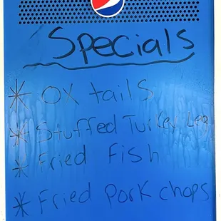 LONG MENU OF ITEMS!Fried fishStuffed Turkey LegBaby back ribsBrisket Fried pork chopShrimp & lobster baked potato