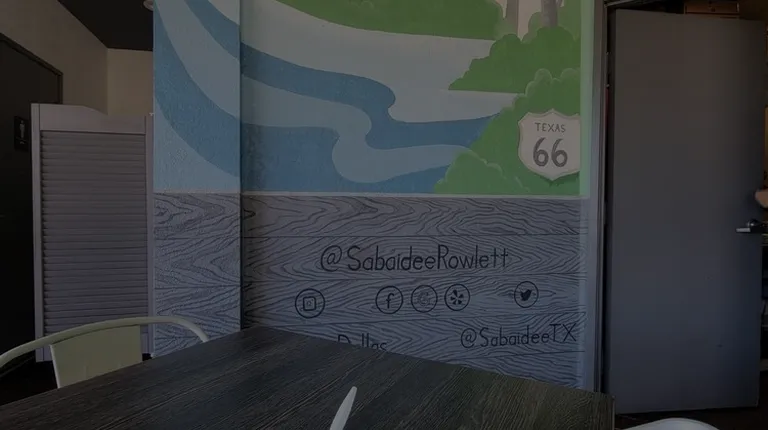 Rowlett, Texas "skyline" depicted in wall mural at Sabaidee Lao & Thai Street Food of Rowlett, TX