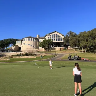 Driving range is ok. Somewhat crowded at all times of the day. The practice chipping green is a bit small. The practice putting green isn't in the best shape. The course is very nice. I called to book a round and they said they were booked for the day. I then mentioned that my friend is playing at 10am and that he had an open spot in his group and for them to look him up. Then they apparently changed their minds and said yes there was an opening .