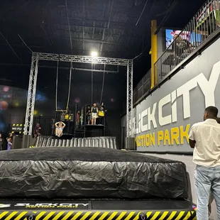 We saw a reel on Instagram about this place and so it look like it was going to be a lot of fun. I mean it looked amazing on the reel like we had been missing something all of our kid lives. They even was an advertisement for adult hours but I would not be interested in that at all after visiting this place. First of all it's in Denton so it's not really convenient to where we live or anything. It is in an older shopping center in Denton. There was good parking and we were able to get in quickly as we purchased tickets in advance. The workers did not seem to be that active around the place in just cleaning up and walking around. The cleanliness of the place was so so. I am not sure how the food was. As We did not try it, but it smelled like it was going to be pretty good. My son and his friend who tried it are 10 years old. They were really kind of bored with it. They tried the slides and came back quickly. They seemed to like the basketball and the swing area better. We sat in front of the swing area and it seemed to be quite hazardous because some people would over swing, and you could kind of fall off the mat. Perhaps it needed to be a little bit longer... we stayed the two hours we paid for and asked the kids about their thoughts. They didn't seem to want to return which is unusual for a kids place. It was very chaotic and loud in there as well. I also wasn't sure how they know it's time for you to leave because we didn't hear any announcements or anything. So overall, it was something to do for the day, but we would not return as it was far and just nothing special. It wasn't very expensive compared to some of these kids parks. However, it was limited compared to similar places.