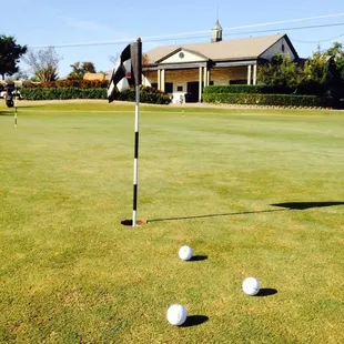 Practice green is in great shape. It's in front of the main entrance by the road.