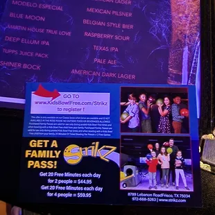 Great fun for family and friends. They have lots to do here for all ages. We bowled on the neon lanes and had a great time. They played tons of 90's hit music that brought back some great memories for me. We arrived around 6:00pm on a weekday which was perfect timing, we ended up having the entire neon lane area to ourselves for an hour. By 7:30pm all of the lanes were packed. The bartender was fantastic, he was so funny and had great humor as he came over to our lane to take our drink orders. They also have an arcade with a variety of games, laser tag, virtual darts, and so much more.I highly recommend Strikz if you're feeling a little competitive and looking for some friendly fun.Oh, I almost forgot... make sure to check-in on the Yelp app when you get here. They will give you a free $10 gift card for the arcade. Enjoy!
