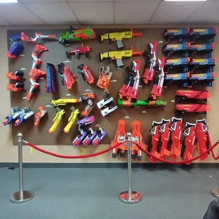 Check out the LARGEST blaster selection in North Texas --- Choose your favorite then head into the NERF WARS BATTLE ARENA!!