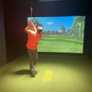 Awesome place . Me and my kids are just getting into golf . The owner was super friendly. I've been to a few indoor golf places and this is the best . Food is good , bartenders are super friendly.